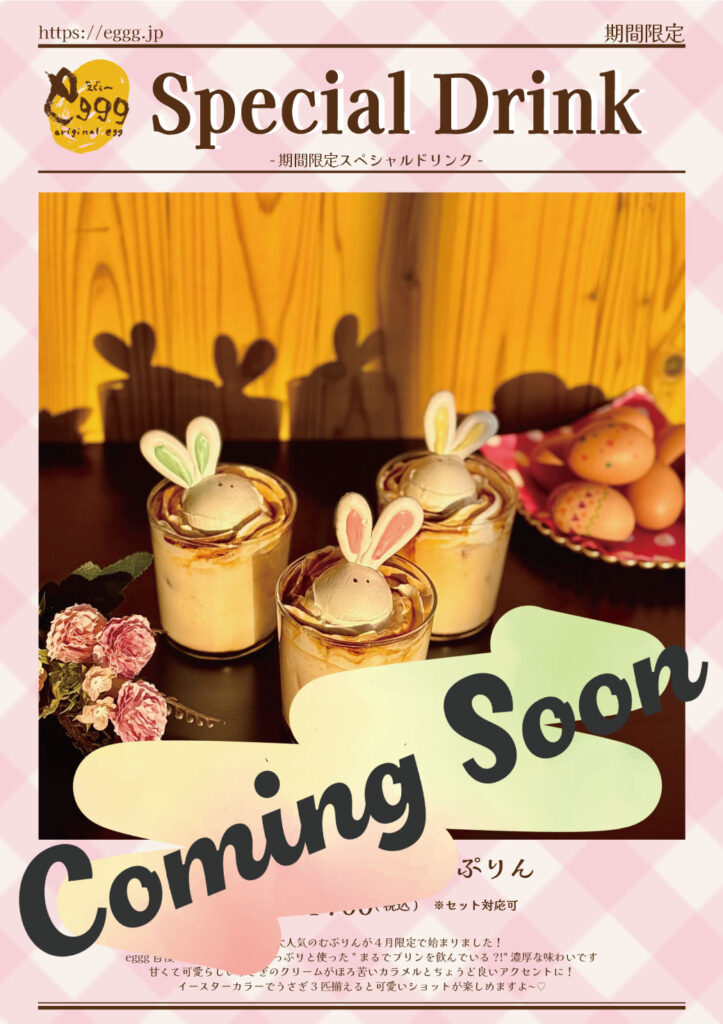 2026.03.25 卵屋さん日記🥚 本日のegggのお話。今日は、来月(4月)からスタートするegggparkのドリンクの詳細が上がってきたので、早速メニュー作成に取り掛かりました。イースターのうさぎに合わせた、素敵な商品ですね!楽しみです! 2026年3月25日 投稿先 Uncategorized ← 過去の投稿へ コメントを残す コメントをキャンセルメールアドレスが公開されることはありません。 ※ が付いている欄は必須項目ですコメント ※ 名前 ※ メール ※ サイト 次回のコメントで使用するためブラウザーに自分の名前、メールアドレス、サイトを保存する。 上に表示された文字を入力してください。 Δ